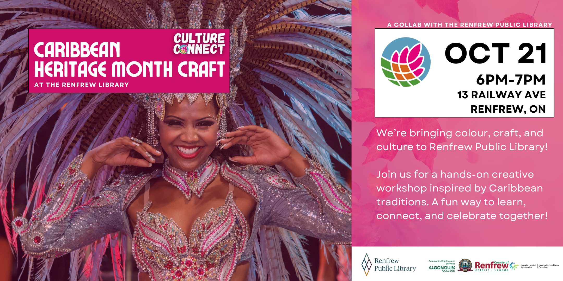 This Caribbean Heritage Month, we’re filling the Renfrew Public Library with colour, craft, and culture! Join us for a hands-on workshop where you’ll dive into the creativity of Caribbean traditions. From bold patterns and bright colours to the stories woven into every design. It’s a chance to learn something new, connect with community, and celebrate […]
