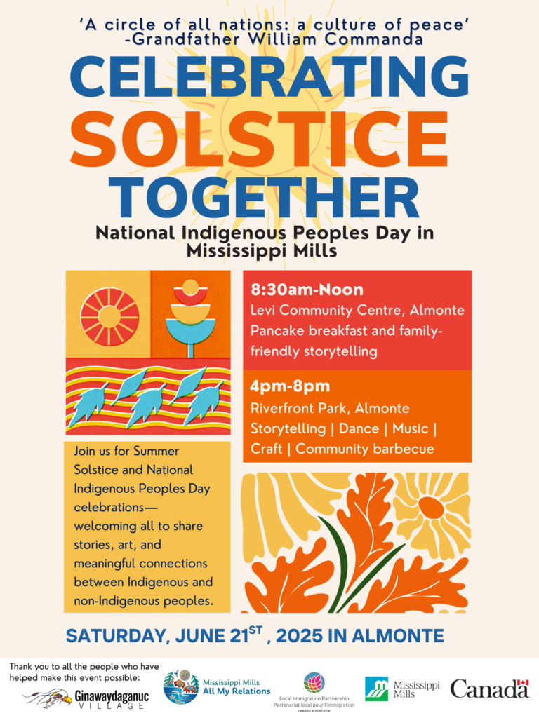 To celebrate National Indigenous People’s Day, Mississippi Mills All My Relations is again holding a Solstice community event in the spirit of the late, highly celebrated, Algonquin Elder William Commanda, […]